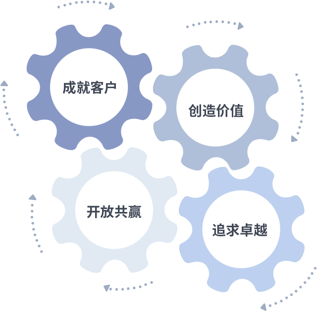 成就客户是一切决策的出发点,创造价值是衡量所有工作的标准,追求卓越是AG亚娱做事做人的态度,开放共赢是AG亚娱的格局也是最终的结果。价值观的齿轮环环相扣,推动着组织里的每个人不断向前。
